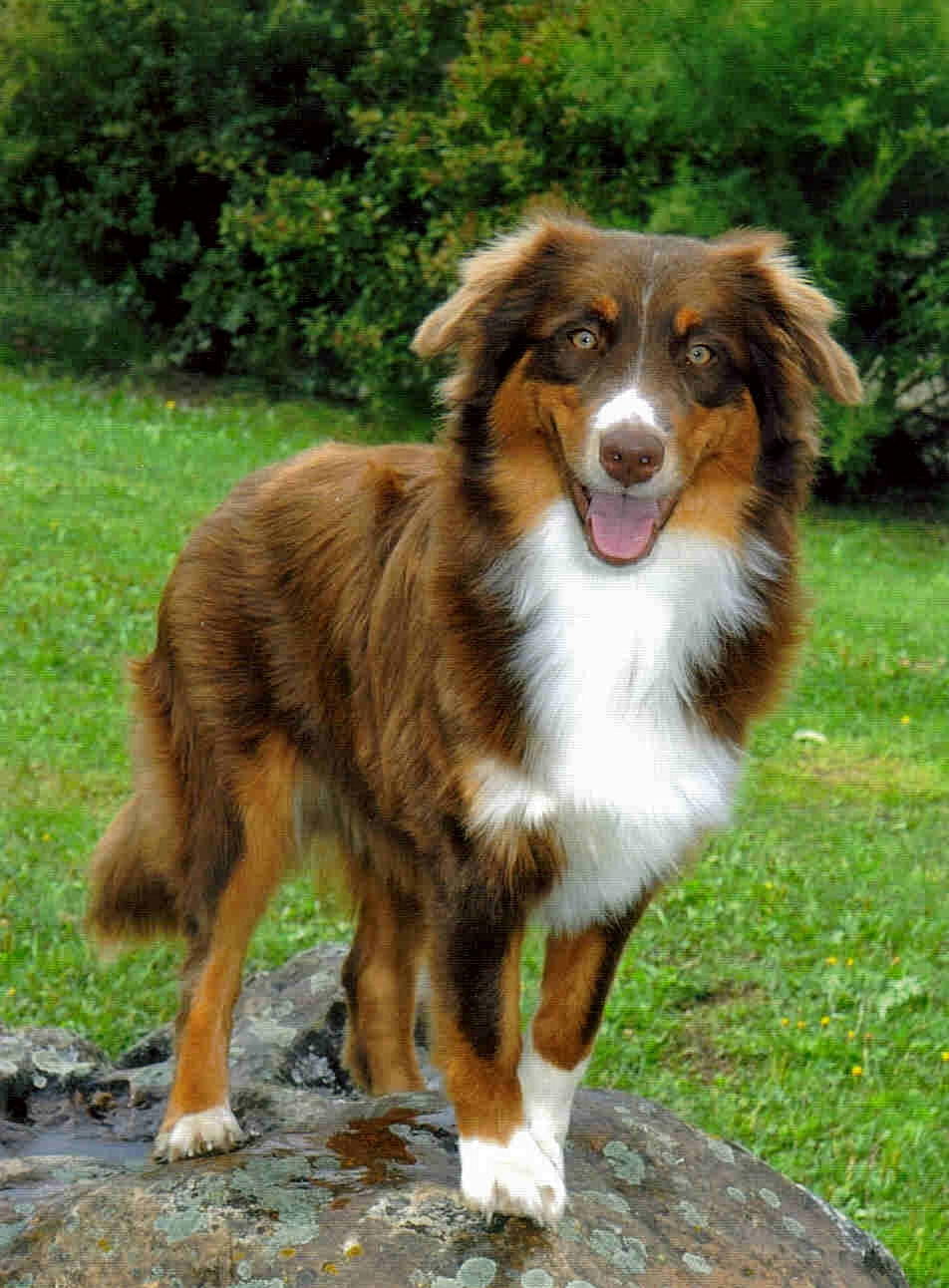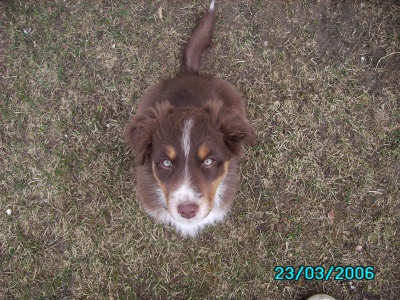 Sie kam, sah und siegte! Dieser Satz paßt zu Casca wie die Faust auf´s Auge. Von dem Tag an, als die kleine rote Hündin in unser Leben einzog war eines schnell klar: Selbsbewußtsein ist ihr zweiter Name, Unerschrockenheit ihr Nachname. In der Hundeschule angekommen, zeigte sie sich von ihrer besten Seite und hatte in Null komma nix die Komandos gelernt. Nachdem Casca aus der Welpengruppe rausgewachen und somit zu den Junghunden kam, wurde schnell klar, dass die Pupertät eine Geduldsprobe werden würde. Bei einem Ohr rein beim anderen raus, das war von nun an einige Zeit unser Motto. Da es den anderen auch nicht viel besser ging, hielten auch wir tapfer durch und wurden schließlich mit einer erwachsenen Hündin belohnt, die ihre Begleithundeprüfung mit einem I. Platz abgeschlossen hat und in der Hundeschule immer eine tadellose Leistung abgibt. Von Casca haben wir viel über "Hundesprache" gelernt. Ihre Mimik und Körpersprache scheint grenzenlos zu sein. Allein ihr "Aussie-Lächeln" reicht von einem kurzen Lefzen hochziehen zur Begrüßung, bis zum vollständigen Entblößen der Zähne, bei ausgelassener Freude. Bei Nichtkennern dieser vom Menschen abgeschauten Mimik hat dies schon des öfteren für entsetzte Blicke gesorgt. Allerdings einmal gesehen, versucht Jeder sie wieder zum Lächeln zu bringen. Seit sie ihren ersten Wurf großgezogen hat, liebt sie Welpen über alles, und würde wahrscheinlich sämtliche Babies adoptieren. Ihre Lieblingsbeschäftigung, außer natürlich den sowieso wichtigen Dingen, wie freßen und schlafen, ist vor allem das Spielen mit ihrer Tochter Sky. Besonders gerne begleitet uns Casca bei Ausritten mit unseren Pferden oder läuft begeistert neben dem Fahrrad her. Ach ja, beim Fußballspielen ist sie unseren Zweibeinern souverän haushoch überlegen. Seit Anfang 2011 ist auch Casca unter die Mantrailer gegangen und zeigt sich dort als echtes Naturtalent. Selbsverständlich ist sich Casca iher Schönheit voll und ganz bewußt und setzt sich immer gekonnt in Pose. Je meht Zuschauer desto besser. Ihr wahnsinniges Gangvermögen kommt ihr auf jeder Ausstellung zu gute. Mit ihren Bernstein-Augen zieht sie uns jeden Tag auf Neue in ihren Bann. Eine Aussie-Liebe eben! Nachdem 2012 ihr dritter, und somit letzter, Wurf geboren wurde, können wir stolz Bilanz ziehen: 15 Welpen die alle putzmunter durch unkomplizierte Geburten zur Welt kamen, und die sie hervorragend und sehr instinktsicher aufgezogen hat.