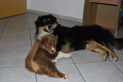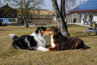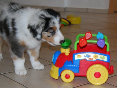 Uns liegt besonders eine gute Prägung der Welpen am Herzen. Wir versuchen die Kleinen behutsam an möglichst viele Situationen heranzuführen, z.B. Geräusche, Autofahrten, Tiere und vor allem Kinder. Kinder deshalb, weil wir selber als junge Familie es als sehr wichtig empfinden dass Hunde und Kinder sich gut verstehen und miteinander richtig umgehen.