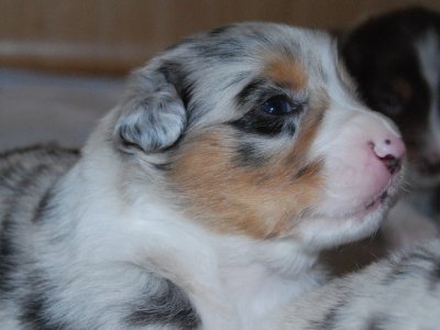 Red Pearl´s Blue Ranger - Blue-Merle Rüde geb. um 8:50 Uhr mit 351 g
