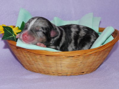 Blue Merle Hündin geb. um 2:35 Uhr mit 341 g