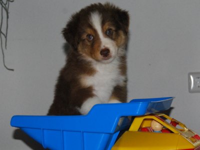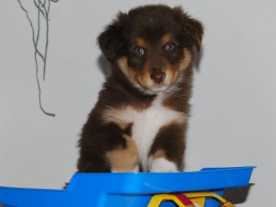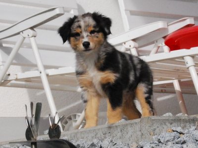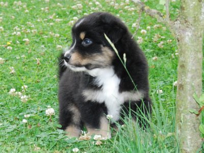 Madoc ist zu Karin nach Landshut gezogen und wird dort ebenfalls als Therapiehund eingesetzt werden. Karin hat schon Aussie Erfahrung, Sepp ihr Black-Tri Rüde war der Bruder von Casca´s Mama Tina.