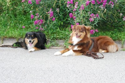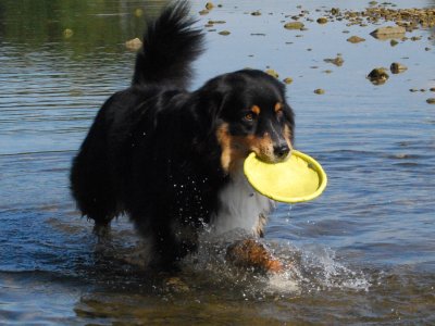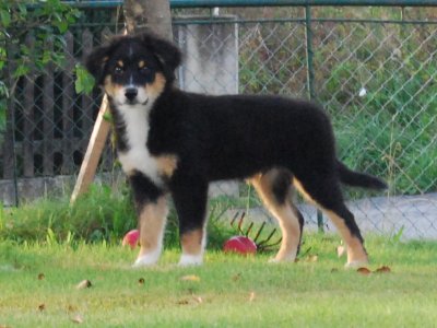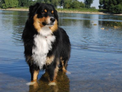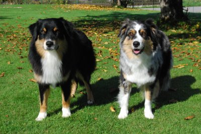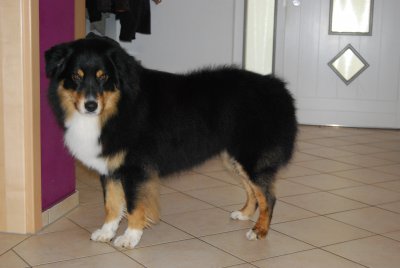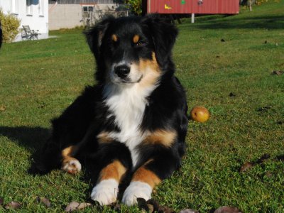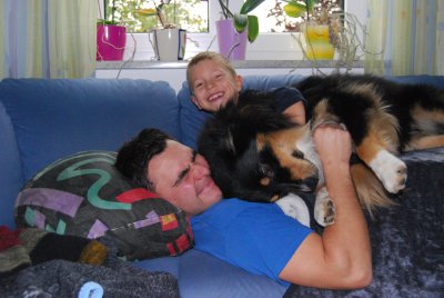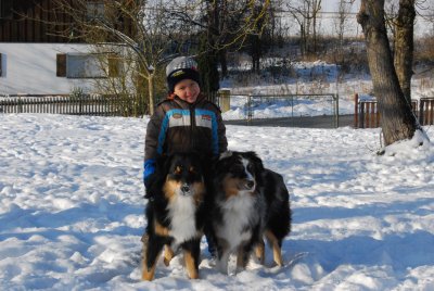Ich kann nur sagen es stimmt: Hat man einen Aussie bleibt´s meist nicht bei einem, in unserem Fall nicht bei zweien. Schon lange war der Gedanke verlockend "So ein Rüde wär schon ganz gut in unserem Mädelsrudel". Als dann Skys erster Wurf zur Welt kam und unser Sohn Leon beim ersten Begutachten der Welpen sofort sagte: "Der Schwarze gehört mir, den geb i net her", waren wir ja noch ganz enspannt. Die Kleinen wurden immer größer und auch uns gefiel er immer besser. Dann kamen die ersten Besucher und irgendwann haben wir dann beschlossen, er bleibt, den geben wir nicht mehr her. Walker bestätigt alle, die von einem Rüden behaupten, die seien unheimlich verschmust. Vom Kuscheln kann er überhaupt nicht genug bekommen! Er ist unglaublich clever und bisher sehr leicht zu führen. Da er sehr ausgeglichen und ruhig ist, paßt er perfekt in unser kleines Rudel.